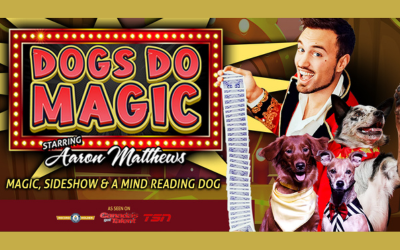 The Canine Captain to our magical dogs is international illusionist Aaron Matthews, who’s performed at major events across Canada including headlining the Calgary Stampede! Aaron & our dog family recently made it to the semi-finals of “Canada’s Got Talent” with their production “The Canine Circus”. Aaron’s quick wit and world-class sleight of hand make him the perfect performer for this fun-filled evening of magic & Labrador-able stunts! Dogs Do Magic is a one-of-a-kind night of world-class magic & canine entertainment perfect for all ages, for the young & young at heart!