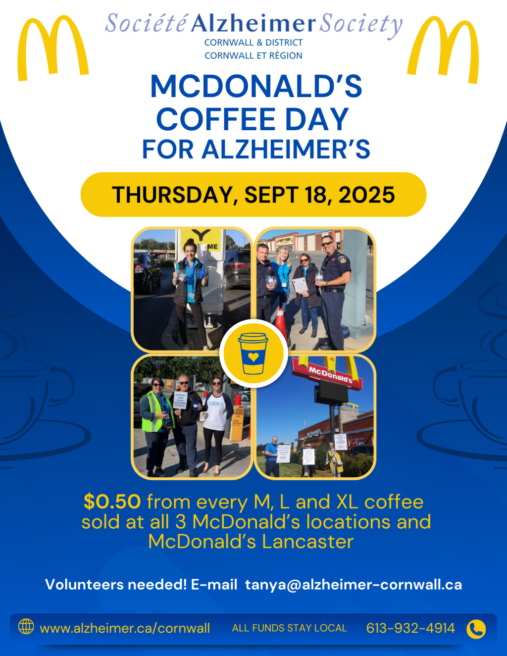 Support the Alzheimer Society Cornwall & District with every coffee purchase on Thursday September 18, 2025.