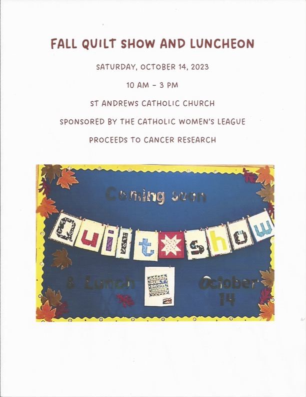Fall Quilt Show and Luncheon Where St Andrews Catholic Church Map When Oct 14/23 10:00 AM - Oct 14/23 03:00 PM Age All